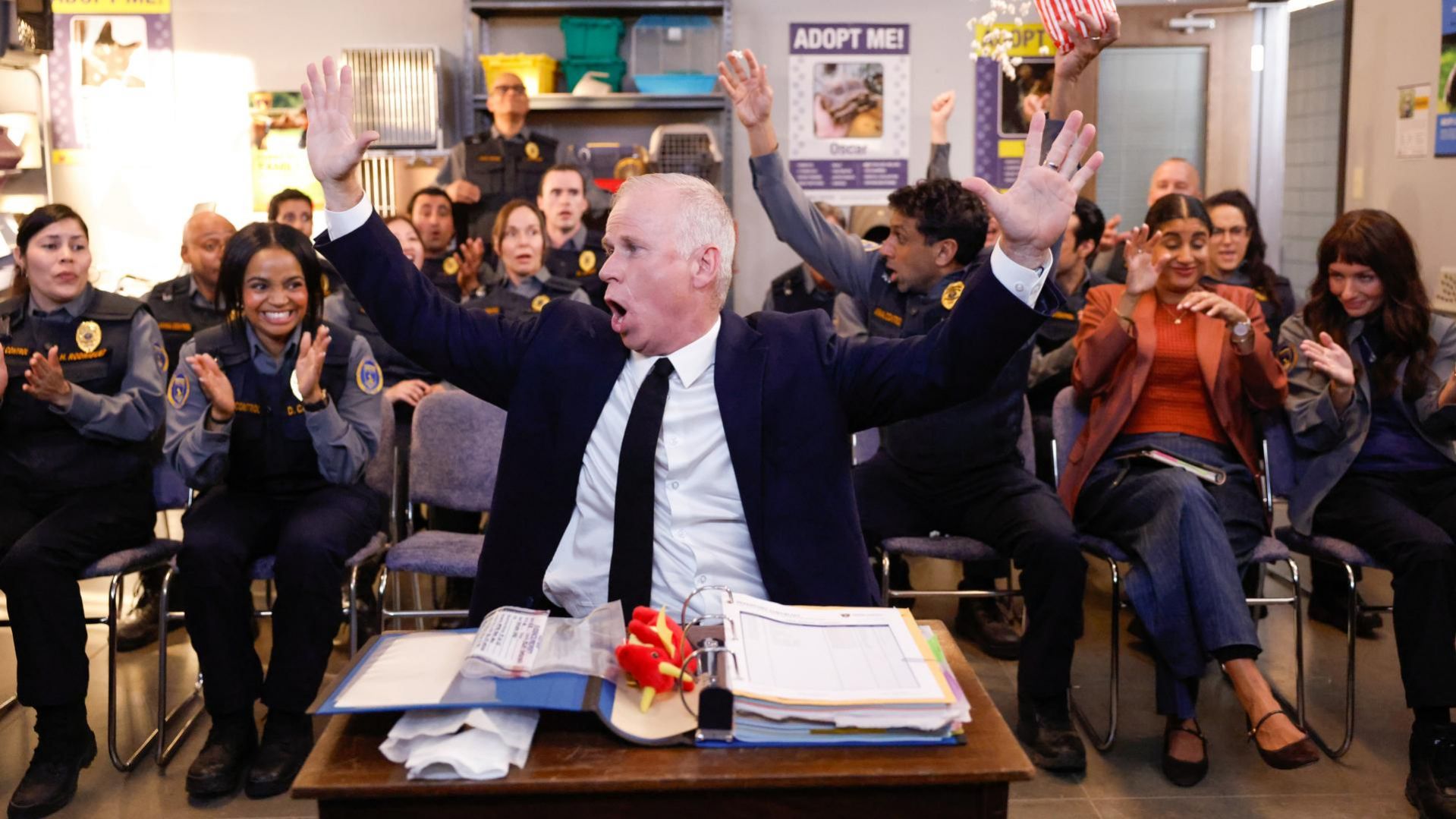 המשרד 9 - פרק 19 עובדי המשרד נרגשים מעלייתם לאוויר של פרומואים לקראת הסרט הדוקומנטרי.